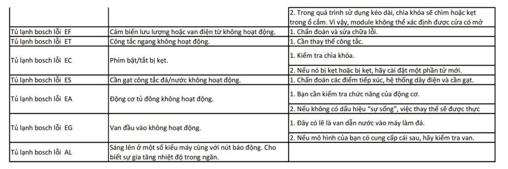3. Tổng Hợp Mã Lỗi Tủ Lạnh Bosch Phổ Biến